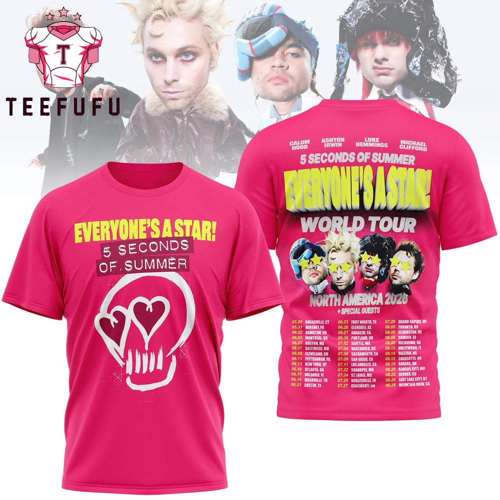 5 Seconds of Summer New World Tour 2026 3D Shirt The 3D Shirt offers a bold and eye-catching design with vibrant, high-definition prints that stand out. Made from soft, breathable fabric, it ensures all-day comfort. Perfect for casual wear or making a statement, this unique shirt adds a stylish and modern touch to any outfit.