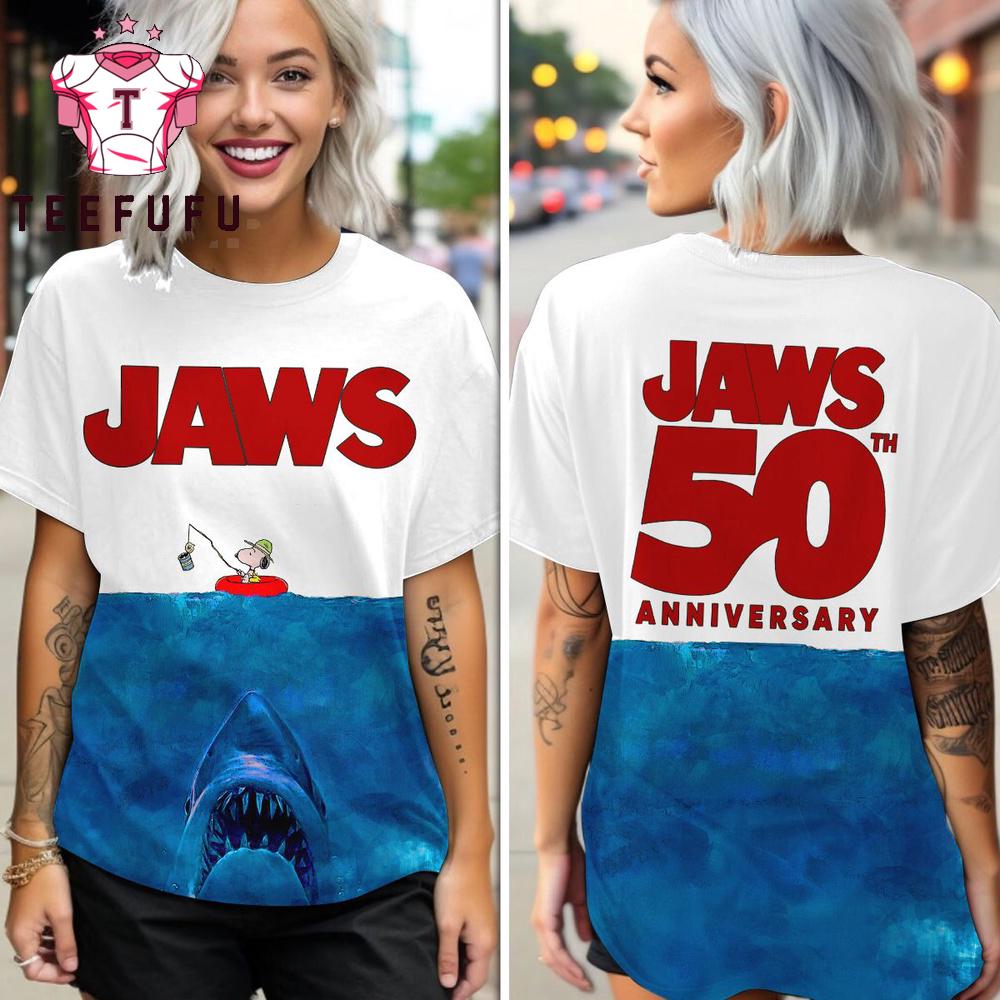 50 Years of Jaws Shark Attack Scene Commemorative Tee The 3D Shirt offers a bold and eye-catching design with vibrant, high-definition prints that stand out. Made from soft, breathable fabric, it ensures all-day comfort. Perfect for casual wear or making a statement, this unique shirt adds a stylish and modern touch to any outfit.