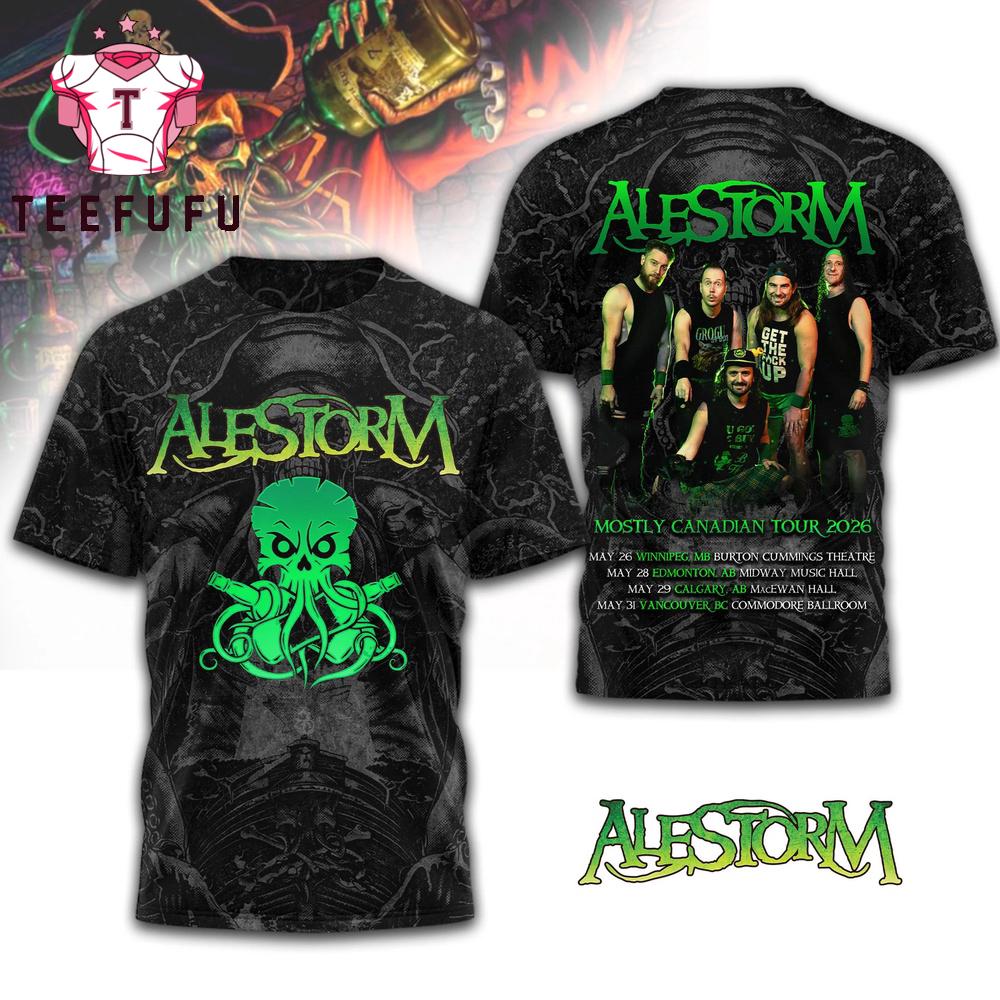 Alestorm Mostly Canadian Tour 2026 T Shirt The 3D Shirt offers a bold and eye-catching design with vibrant, high-definition prints that stand out. Made from soft, breathable fabric, it ensures all-day comfort. Perfect for casual wear or making a statement, this unique shirt adds a stylish and modern touch to any outfit.