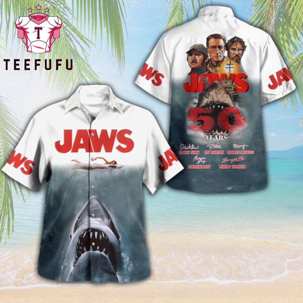 Amity Island Vibes Jaws Themed Aloha Shirt for Shark Fans The Hawaiian Shirt combines vibrant tropical prints with lightweight, breathable fabric for ultimate comfort. Perfect for vacations, beach outings, or casual wear, it offers a relaxed fit and a stylish, laid-back vibe. Stay cool and fashionable with this must-have summer essential.
