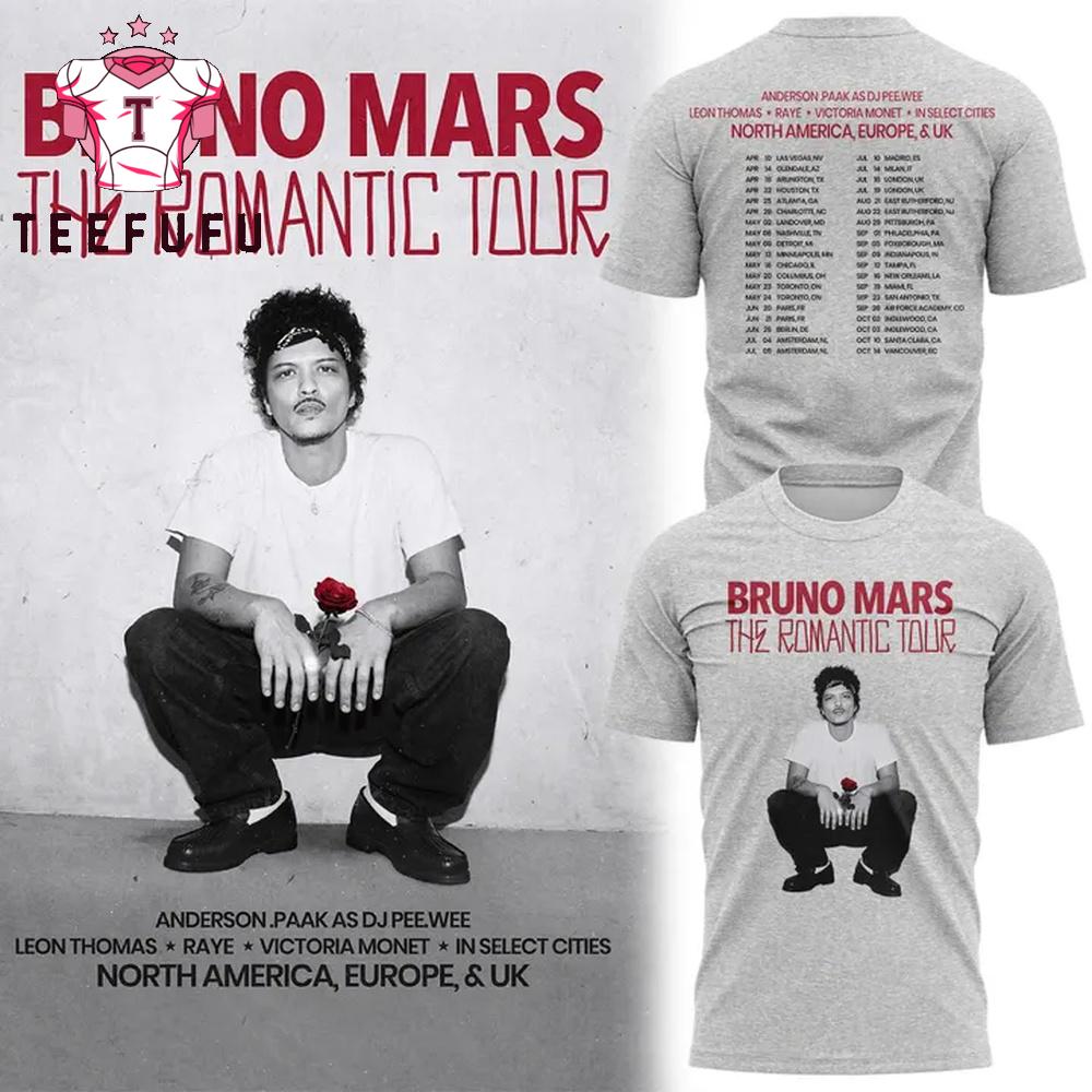 Bruno Mars The Romantic Tour 2026 Special New T Shirt The 3D Shirt offers a bold and eye-catching design with vibrant, high-definition prints that stand out. Made from soft, breathable fabric, it ensures all-day comfort. Perfect for casual wear or making a statement, this unique shirt adds a stylish and modern touch to any outfit.