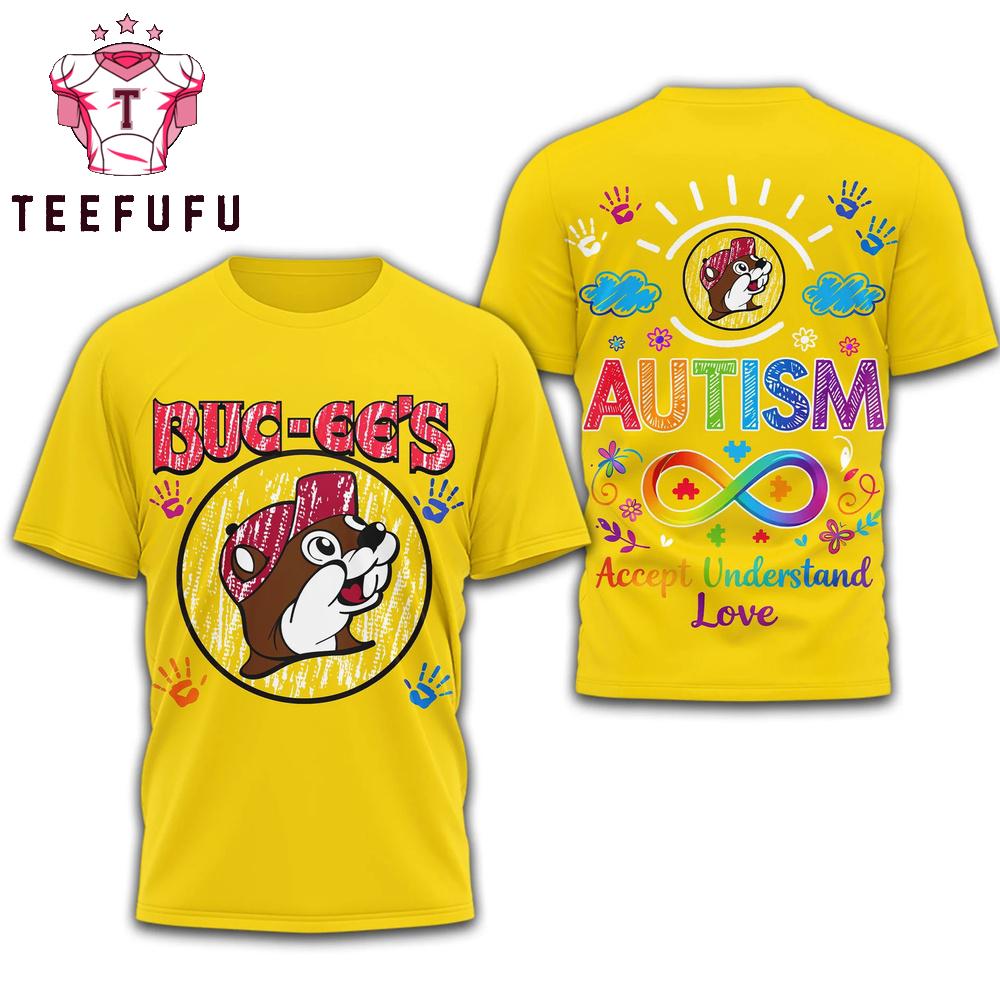 Buc-ee’s Autism Accept Understand Love Yellow T Shirt The 3D Shirt offers a bold and eye-catching design with vibrant, high-definition prints that stand out. Made from soft, breathable fabric, it ensures all-day comfort. Perfect for casual wear or making a statement, this unique shirt adds a stylish and modern touch to any outfit.