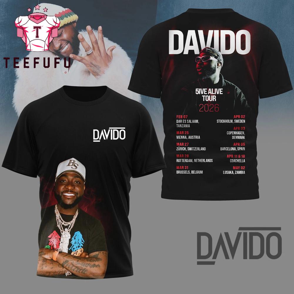 Davido 5ive Alive Tour 2026 T Shirt The 3D Shirt offers a bold and eye-catching design with vibrant, high-definition prints that stand out. Made from soft, breathable fabric, it ensures all-day comfort. Perfect for casual wear or making a statement, this unique shirt adds a stylish and modern touch to any outfit.