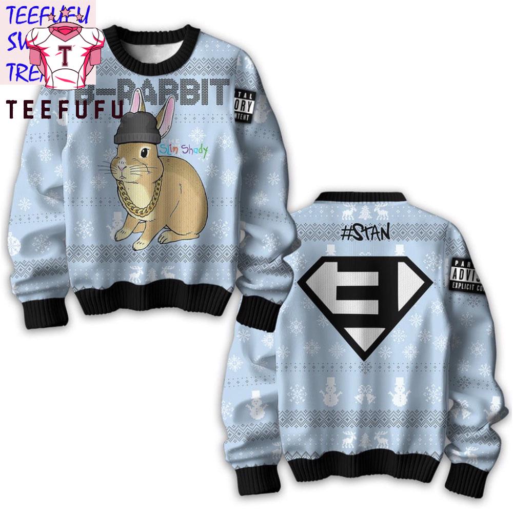 Eminem B-Rabbit Stan Christmas Sweater Get into the holiday spirit with our Christmas Ugly Sweater. Featuring fun, festive, and eye-catching designs, this cozy sweater is perfect for parties, family gatherings, or holiday photos. Made from soft, warm fabric, it ensures comfort and cheer all season long. A must-have for Christmas fun.