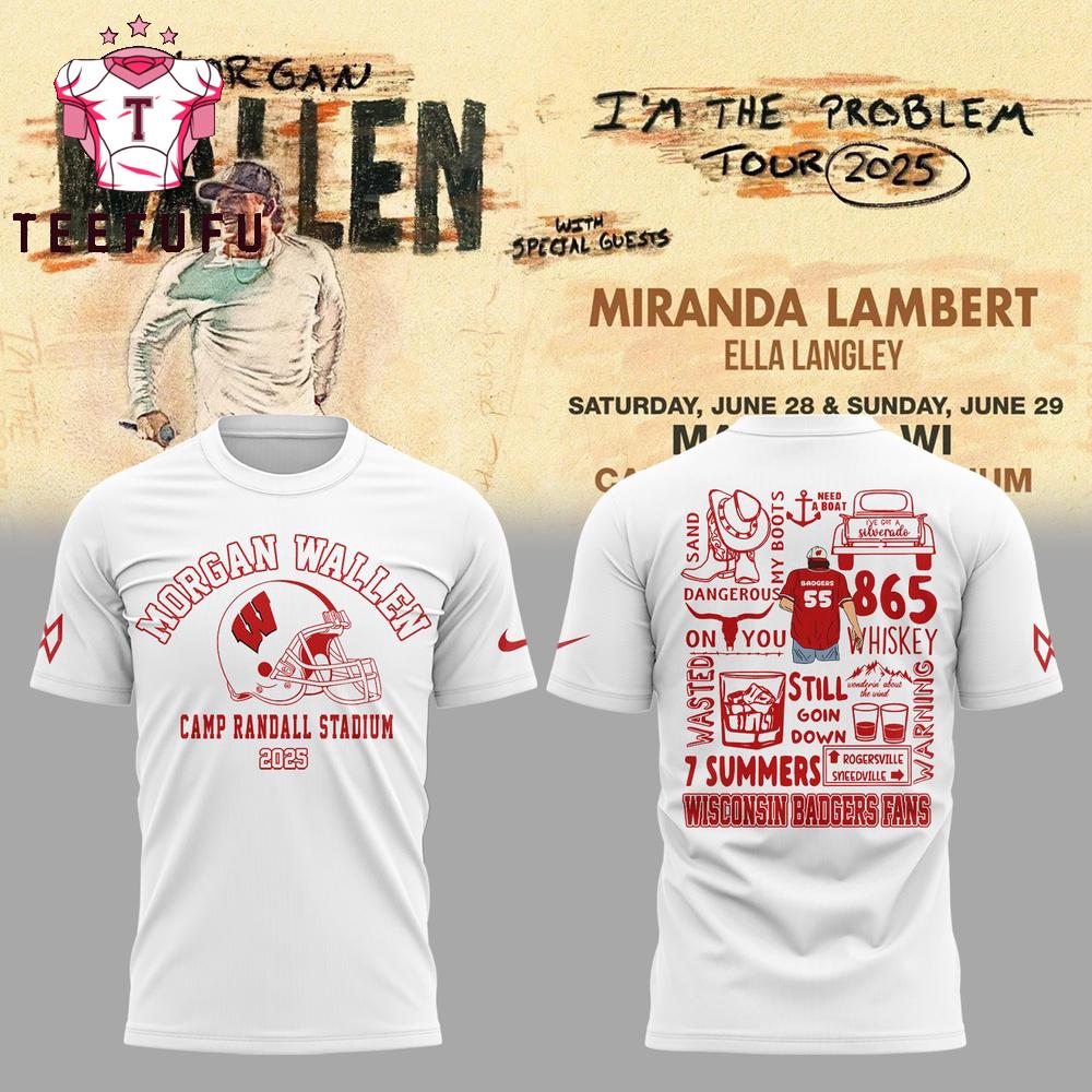 Photos Of Exclusive Version Wisconsin Badgers x Morgan Wallen I’m The Problem 2025 Tour White 3D Shirt