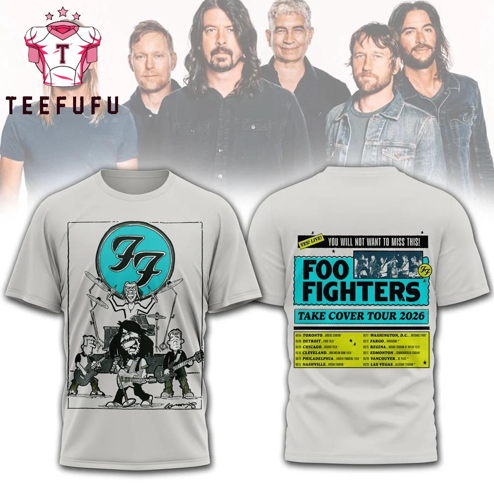 Foo Fighters Take Cover Tour 2026 Limited T Shirt The 3D Shirt offers a bold and eye-catching design with vibrant, high-definition prints that stand out. Made from soft, breathable fabric, it ensures all-day comfort. Perfect for casual wear or making a statement, this unique shirt adds a stylish and modern touch to any outfit.