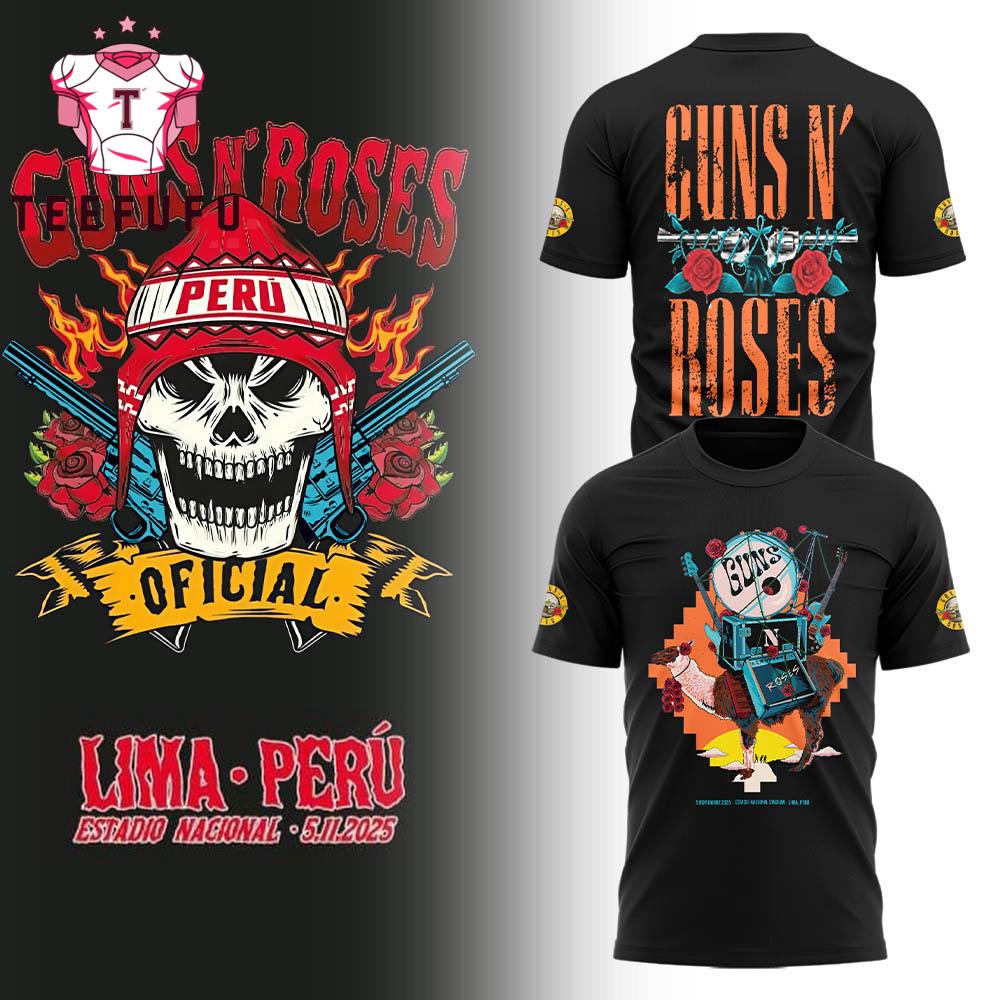 Guns N’ Roses Lima Peru Tour 2025 Black T Shirt The 3D Shirt offers a bold and eye-catching design with vibrant, high-definition prints that stand out. Made from soft, breathable fabric, it ensures all-day comfort. Perfect for casual wear or making a statement, this unique shirt adds a stylish and modern touch to any outfit.