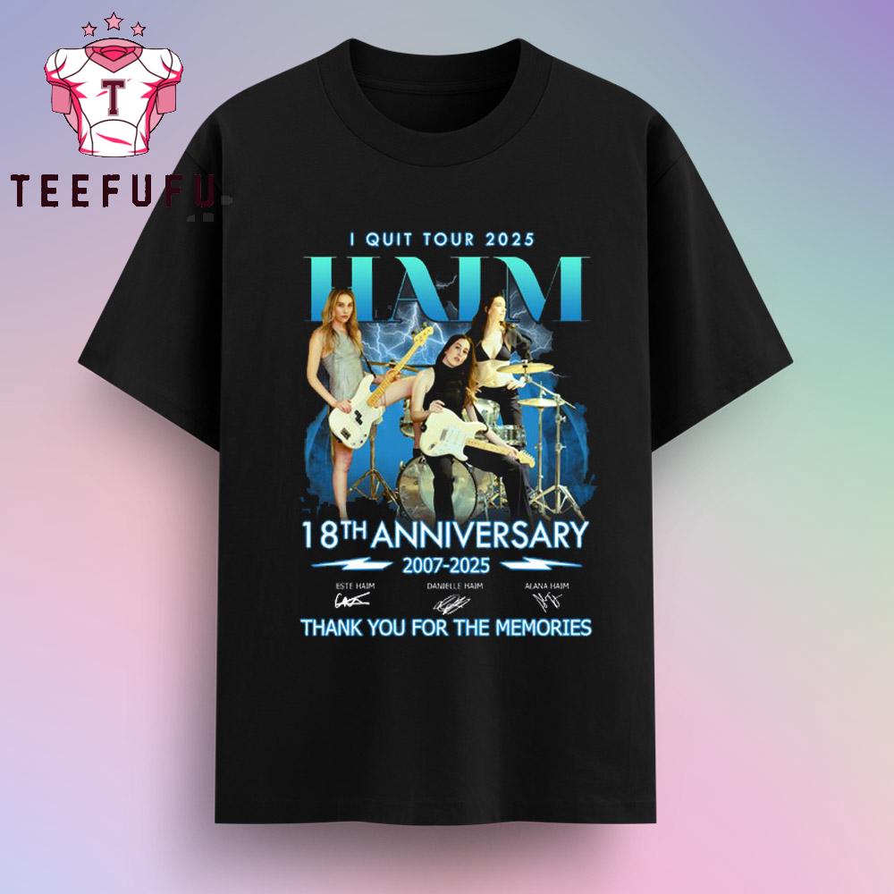As trends lean towards vintage band apparel and nostalgic fashion, the Haim Band “I Quit” Tour 2025 18th Anniversary T-Shirt fits perfectly into current style movements. This exclusive edition is ideal for fans who appreciate music-inspired fashion and want to show their love for one of the most influential bands of our time. With its bold design and commemorative appeal, this t-shirt is set to become a classic item that fans will treasure.