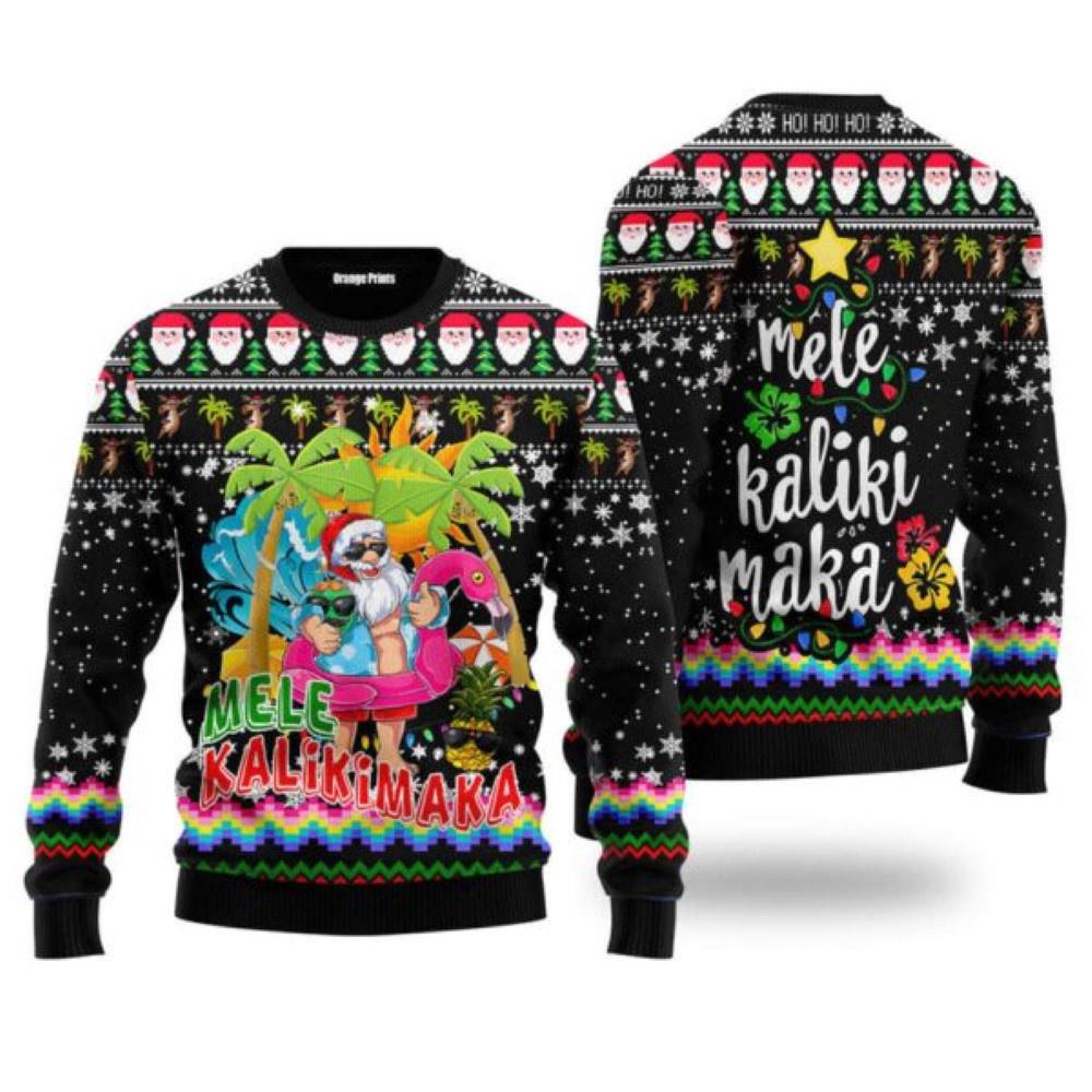 Photos Of Hawaiian Santa Claus Mele Kalikimaka Sunset Ugly Christmas Sweater For Men And Women Christmas Gift Christmas Winter Fashion 3182