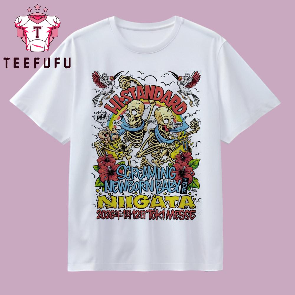 Celebrate the legendary Hi-Standard with this exclusive T-Shirt commemorating their electrifying performance on January 12, 2026, at Toki Messe in Niigata, Japan. Designed for the true fan, this limited edition piece is a must-have for any hardcore punk enthusiast seeking to capture the magic of Hi-Standard’s iconic live shows.