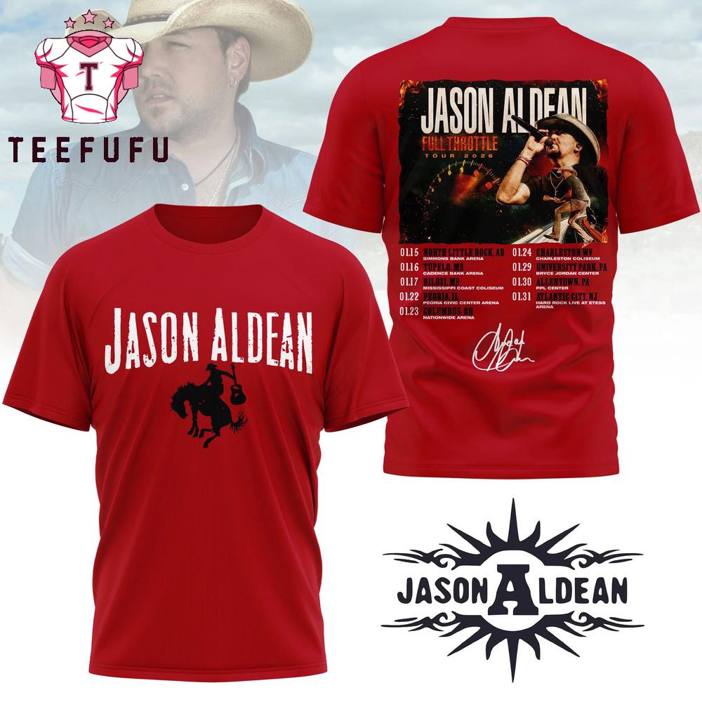 Jason Aldean Full Throttle 2026 Tour Red T Shirt The 3D Shirt offers a bold and eye-catching design with vibrant, high-definition prints that stand out. Made from soft, breathable fabric, it ensures all-day comfort. Perfect for casual wear or making a statement, this unique shirt adds a stylish and modern touch to any outfit.
