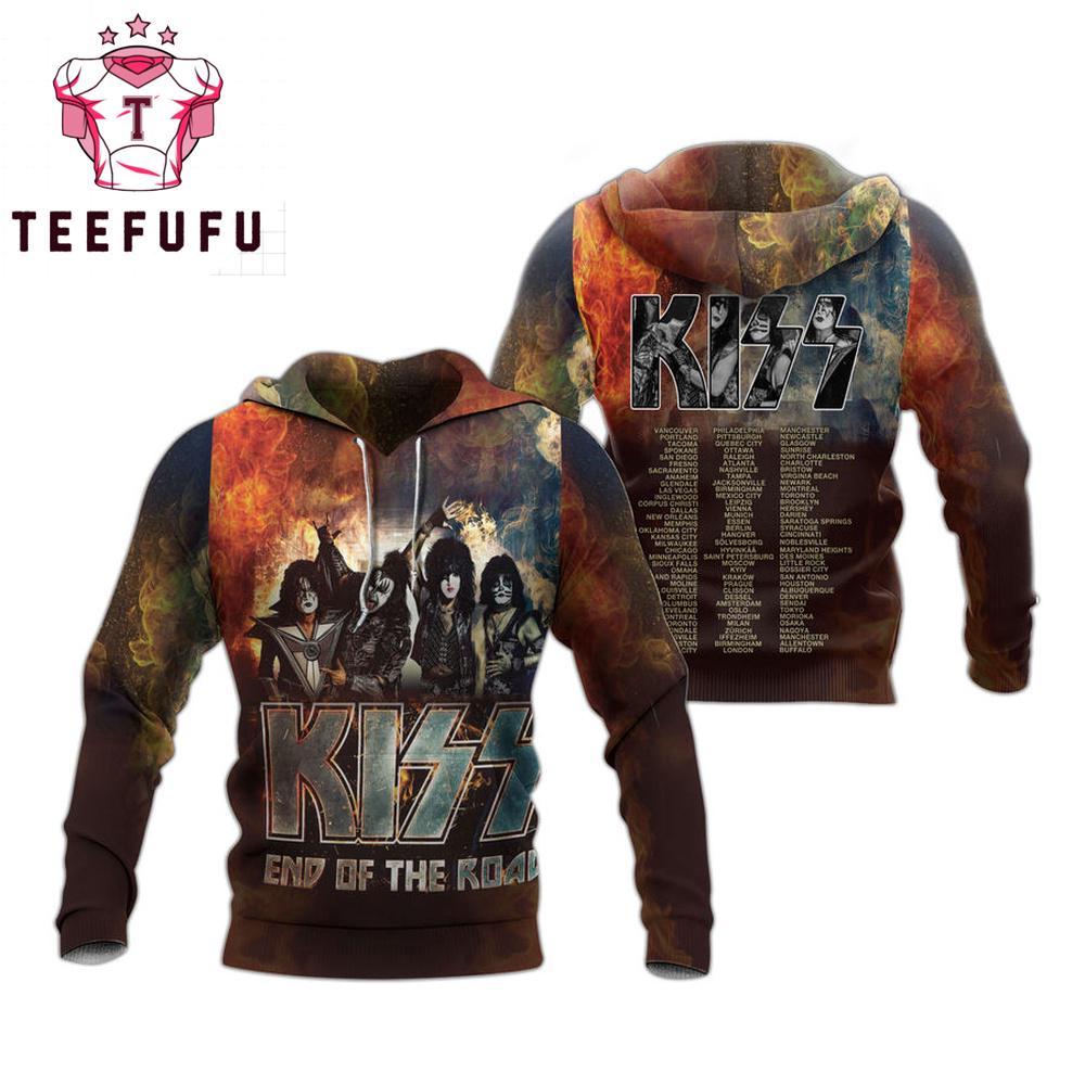 Kiss End Of The Road World Tour All Over Print Hoodie The 3D Shirt offers a bold and eye-catching design with vibrant, high-definition prints that stand out. Made from soft, breathable fabric, it ensures all-day comfort. Perfect for casual wear or making a statement, this unique shirt adds a stylish and modern touch to any outfit.