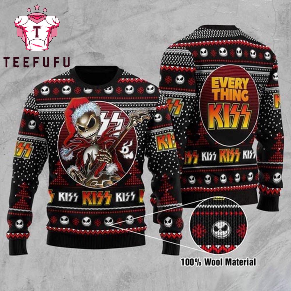 Photos Of Kiss Jack Skellington Playing Guitar 2025 Ugly Christmas Sweater