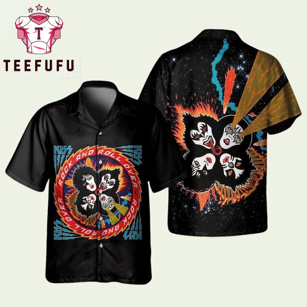 Kiss Rock And Roll Over 1976 Album Hawaiian Shirt The Hawaiian Shirt combines vibrant tropical prints with lightweight, breathable fabric for ultimate comfort. Perfect for vacations, beach outings, or casual wear, it offers a relaxed fit and a stylish, laid-back vibe. Stay cool and fashionable with this must-have summer essential.