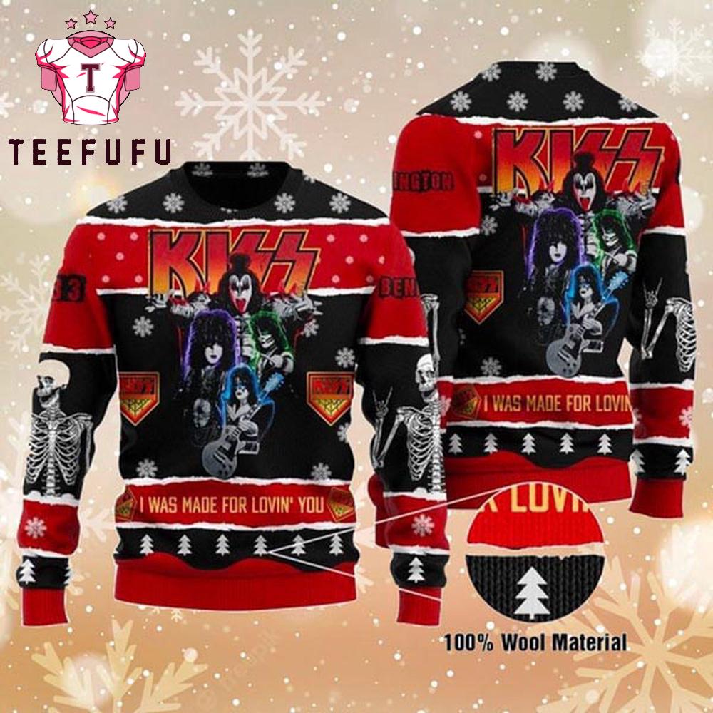Kiss Roll n Rock I Was Made For Lovin You 2025 Ugly Christmas Sweater Get into the holiday spirit with our Christmas Ugly Sweater. Featuring fun, festive, and eye-catching designs, this cozy sweater is perfect for parties, family gatherings, or holiday photos. Made from soft, warm fabric, it ensures comfort and cheer all season long. A must-have for Christmas fun.