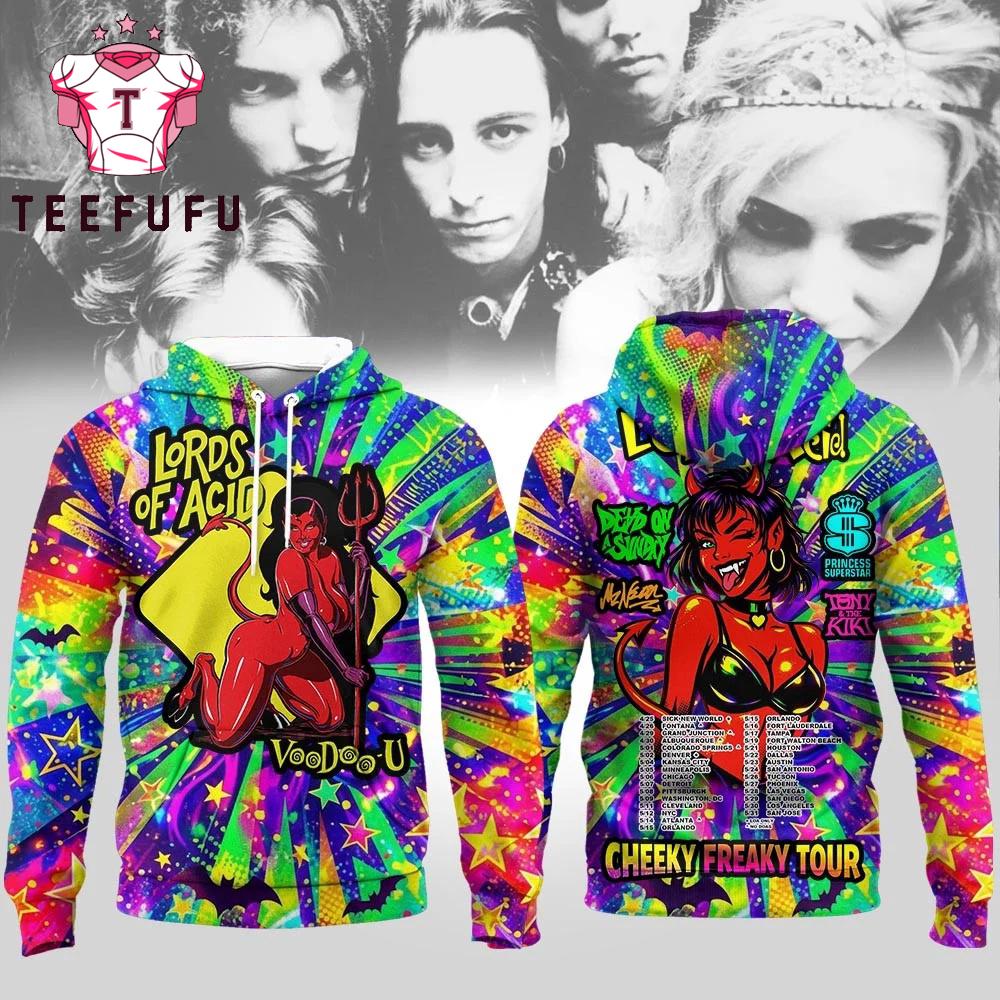 Lords of Acid Cheeky Freaky Tour 2026 Hoodie The 3D Shirt offers a bold and eye-catching design with vibrant, high-definition prints that stand out. Made from soft, breathable fabric, it ensures all-day comfort. Perfect for casual wear or making a statement, this unique shirt adds a stylish and modern touch to any outfit.