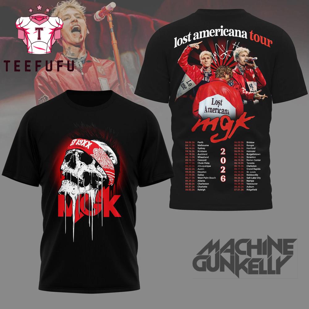 Machine Gunkelly Lost Americana Tour 2026 T Shirt The 3D Shirt offers a bold and eye-catching design with vibrant, high-definition prints that stand out. Made from soft, breathable fabric, it ensures all-day comfort. Perfect for casual wear or making a statement, this unique shirt adds a stylish and modern touch to any outfit.
