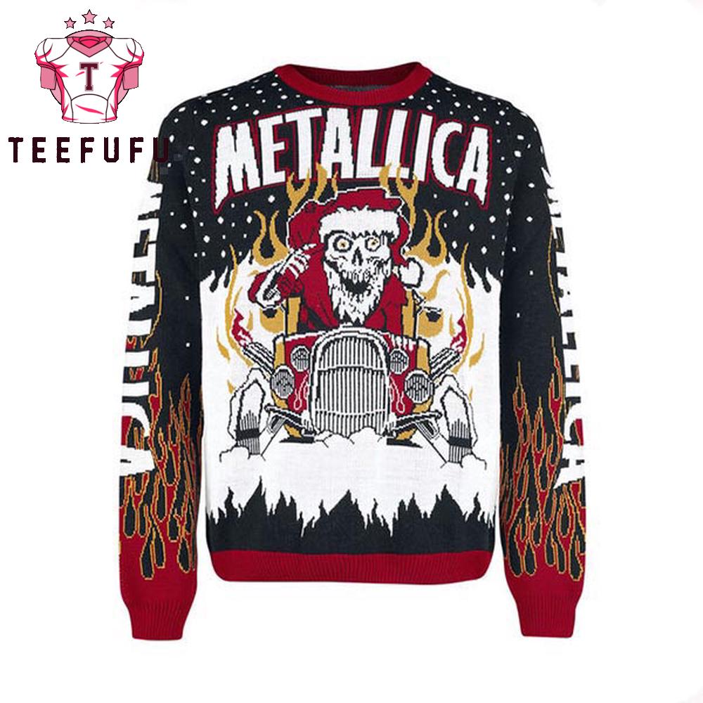 Metallica Gimme Yule Skull Santa Playing Drum Ugly Christmas Sweater Get into the holiday spirit with our Christmas Ugly Sweater. Featuring fun, festive, and eye-catching designs, this cozy sweater is perfect for parties, family gatherings, or holiday photos. Made from soft, warm fabric, it ensures comfort and cheer all season long. A must-have for Christmas fun.