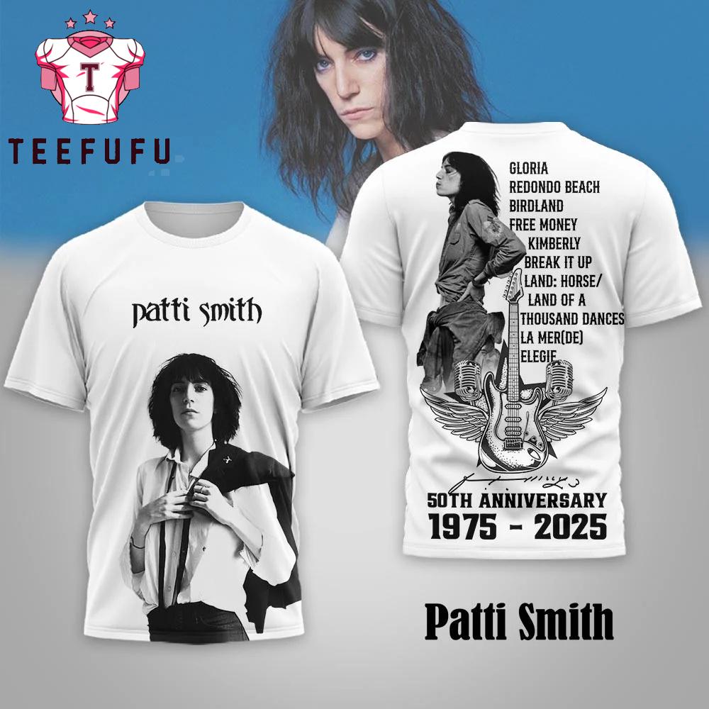 Patti Smith 1975-2025 50th Anniversary 3D Shirt The 3D Shirt offers a bold and eye-catching design with vibrant, high-definition prints that stand out. Made from soft, breathable fabric, it ensures all-day comfort. Perfect for casual wear or making a statement, this unique shirt adds a stylish and modern touch to any outfit.