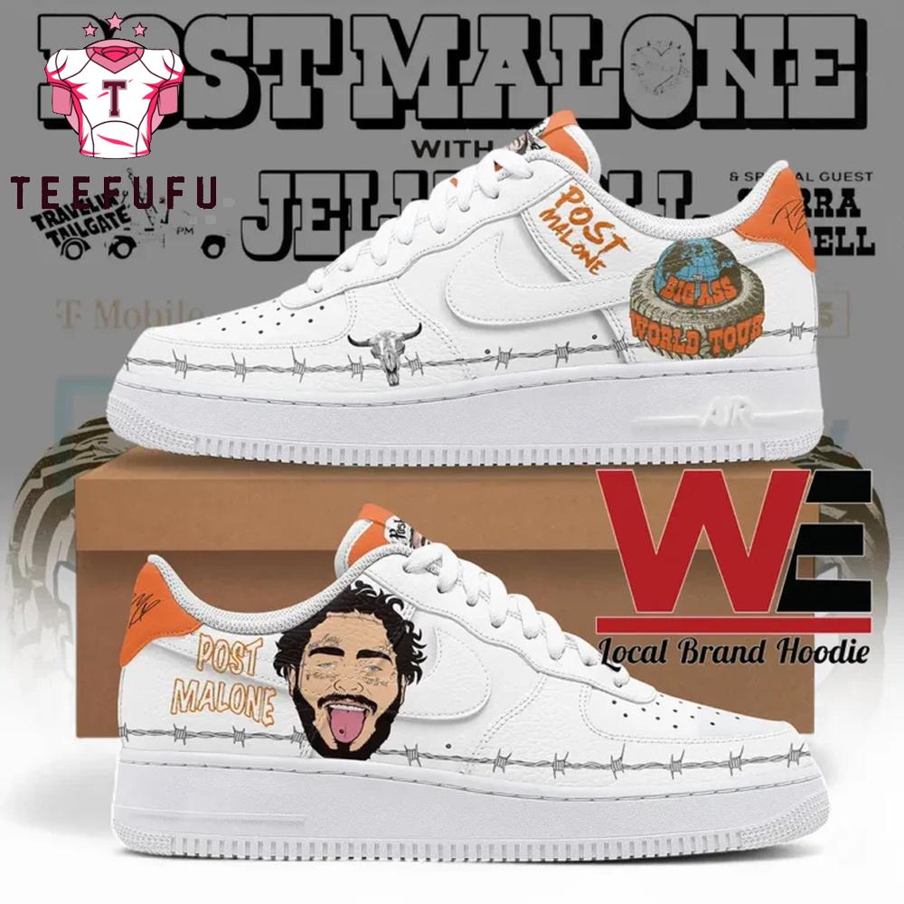 Post Malone Big Ass World Tour Air Force 1 Shoes Sneaker The Air Force 1 Shoes blend classic style with modern comfort. Featuring a durable leather upper, iconic silhouette, and cushioned sole, they provide all-day support and timeless appeal. Perfect for casual wear or street style, these sneakers are a must-have for any wardrobe.