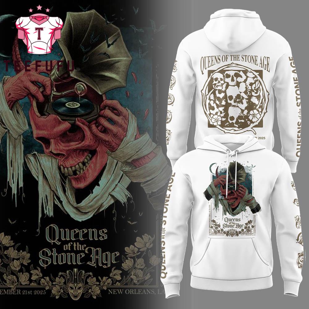 Queens of the Stone Age New Orleans, LA 2025 Tour White Hoodie Shirt The 3D Shirt offers a bold and eye-catching design with vibrant, high-definition prints that stand out. Made from soft, breathable fabric, it ensures all-day comfort. Perfect for casual wear or making a statement, this unique shirt adds a stylish and modern touch to any outfit.
