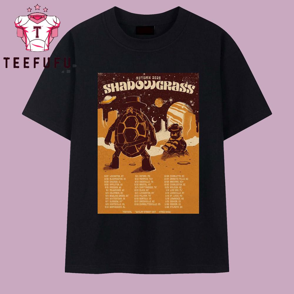 Tailored for those who appreciate exclusive event apparel, this Shadowgrass T shirt caters to a diverse audience, offering sizes and styles that meet a variety of preferences. Its design pays homage to the distinctive aesthetic of modern fall fashion, making it a perfect gift for anyone looking to enhance their wardrobe with a touch of elegance and contemporary flair.