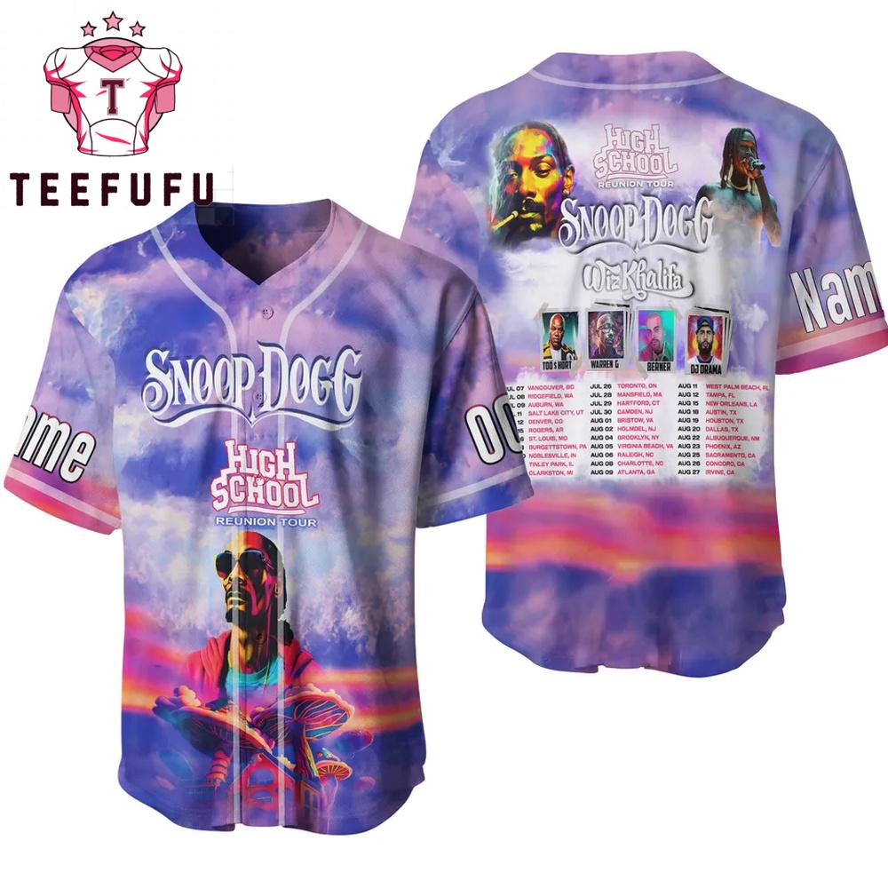 Snoop Dogg High School Reunion Tour Baseball Jersey The Baseball Jersey combines sporty style with everyday comfort. Featuring a button-up front, breathable fabric, and classic athletic design, it’s perfect for casual wear or game day. With a relaxed fit and bold prints, this jersey adds a trendy and sporty touch to any outfit.
