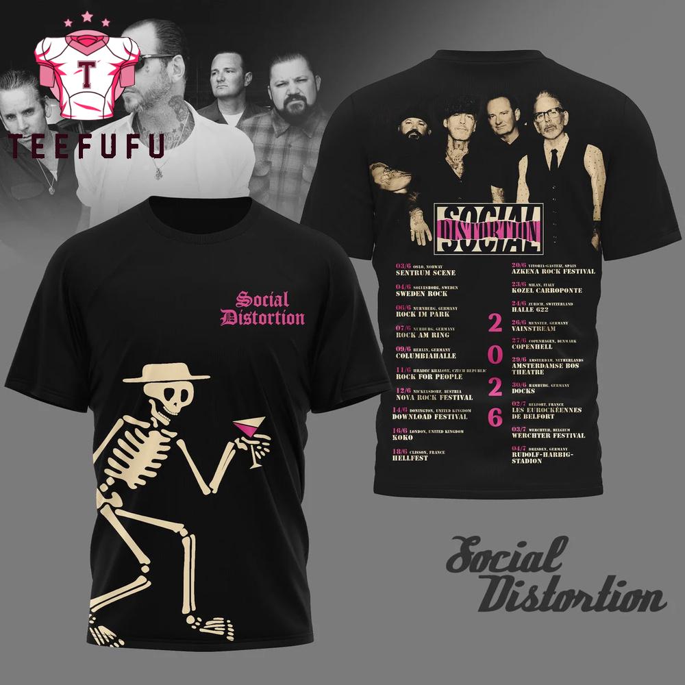 Social Distortion 2026 Tour Graphic Music T Shirt The 3D Shirt offers a bold and eye-catching design with vibrant, high-definition prints that stand out. Made from soft, breathable fabric, it ensures all-day comfort. Perfect for casual wear or making a statement, this unique shirt adds a stylish and modern touch to any outfit.
