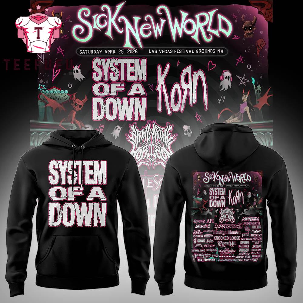 System Of A Down Tour 2026 SICK NEW WORLD Black Hoodie The 3D Shirt offers a bold and eye-catching design with vibrant, high-definition prints that stand out. Made from soft, breathable fabric, it ensures all-day comfort. Perfect for casual wear or making a statement, this unique shirt adds a stylish and modern touch to any outfit.