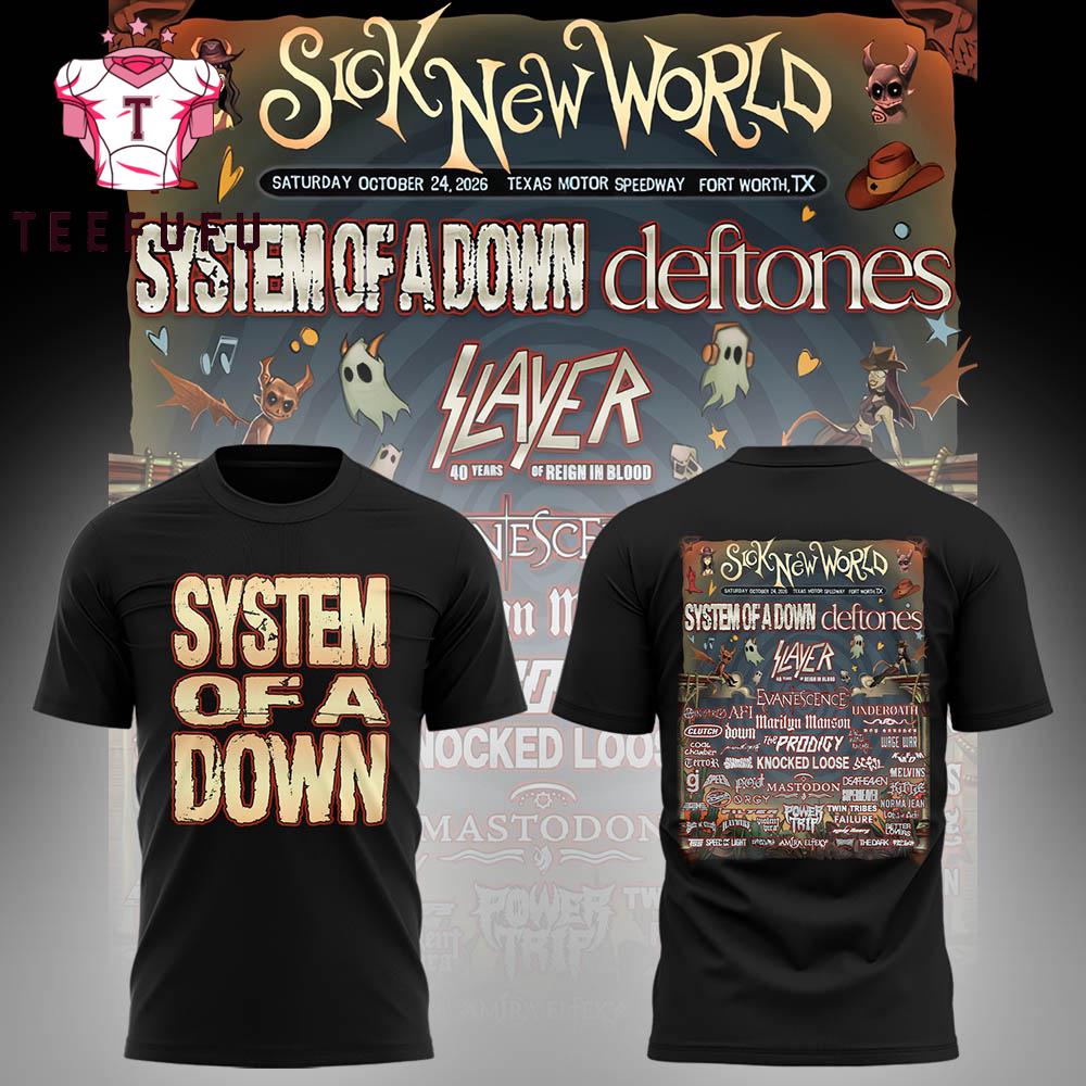 System Of A Down Tour 2026 SICK NEW WORLD Black T Shirt The 3D Shirt offers a bold and eye-catching design with vibrant, high-definition prints that stand out. Made from soft, breathable fabric, it ensures all-day comfort. Perfect for casual wear or making a statement, this unique shirt adds a stylish and modern touch to any outfit.