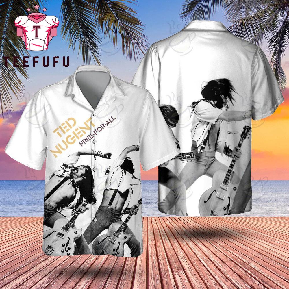 Ted Nugent Free for All Hawaiian Shirt The Hawaiian Shirt combines vibrant tropical prints with lightweight, breathable fabric for ultimate comfort. Perfect for vacations, beach outings, or casual wear, it offers a relaxed fit and a stylish, laid-back vibe. Stay cool and fashionable with this must-have summer essential.