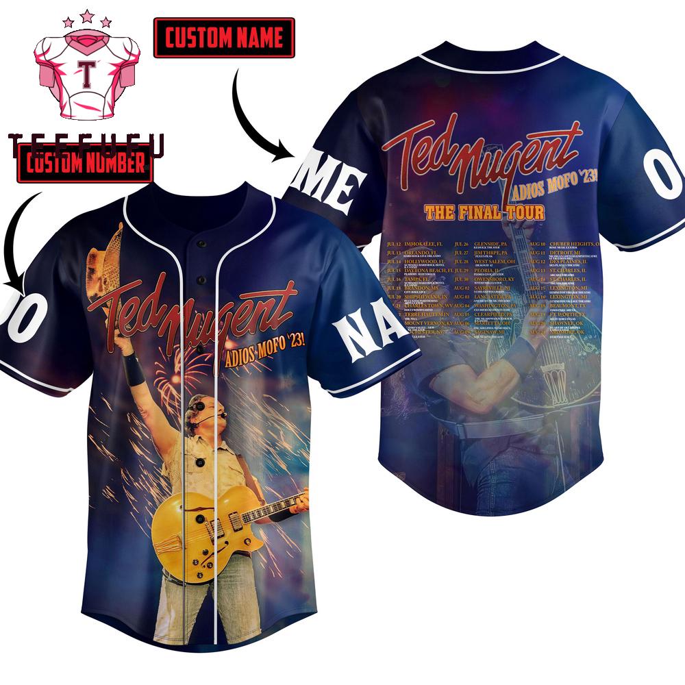 Ted Nugent The Final Tour Baseball Jersey The Baseball Jersey combines sporty style with everyday comfort. Featuring a button-up front, breathable fabric, and classic athletic design, it’s perfect for casual wear or game day. With a relaxed fit and bold prints, this jersey adds a trendy and sporty touch to any outfit.