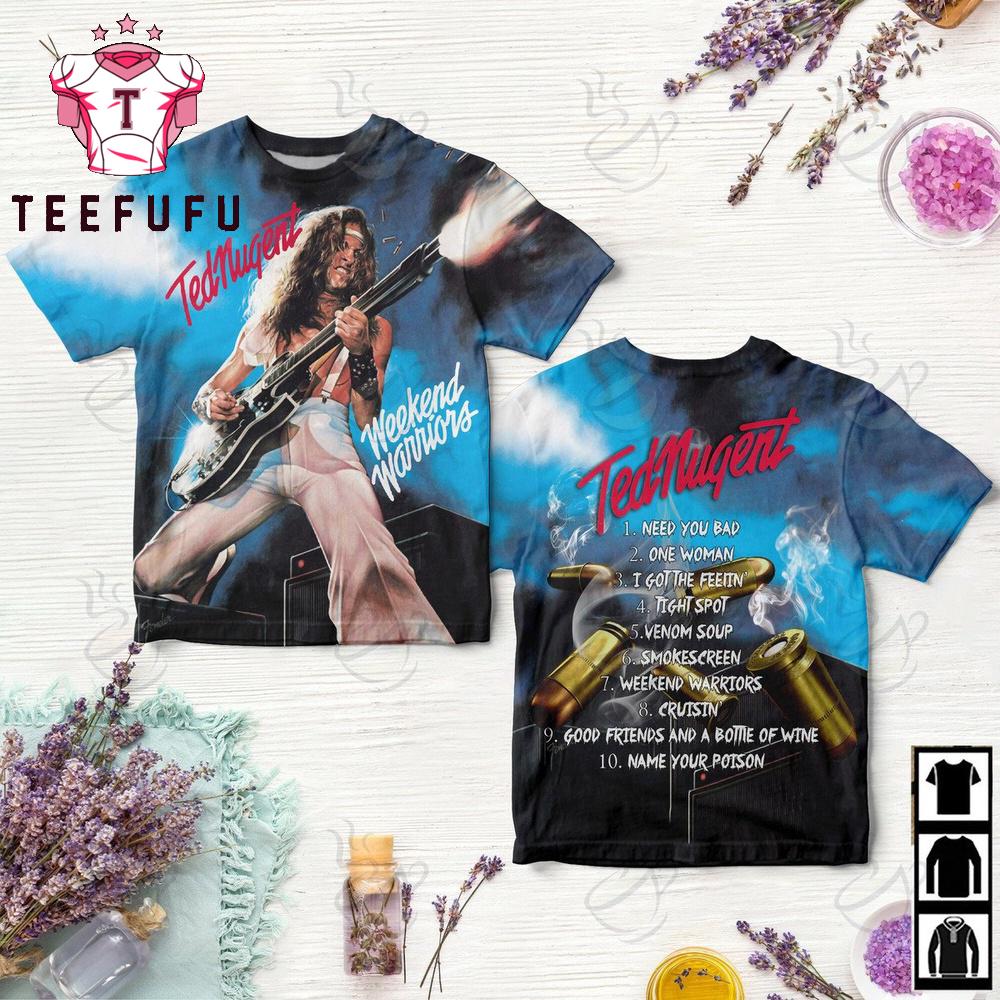 Ted Nugent Weekend Warriors All Over Print Shirt The 3D Shirt offers a bold and eye-catching design with vibrant, high-definition prints that stand out. Made from soft, breathable fabric, it ensures all-day comfort. Perfect for casual wear or making a statement, this unique shirt adds a stylish and modern touch to any outfit.